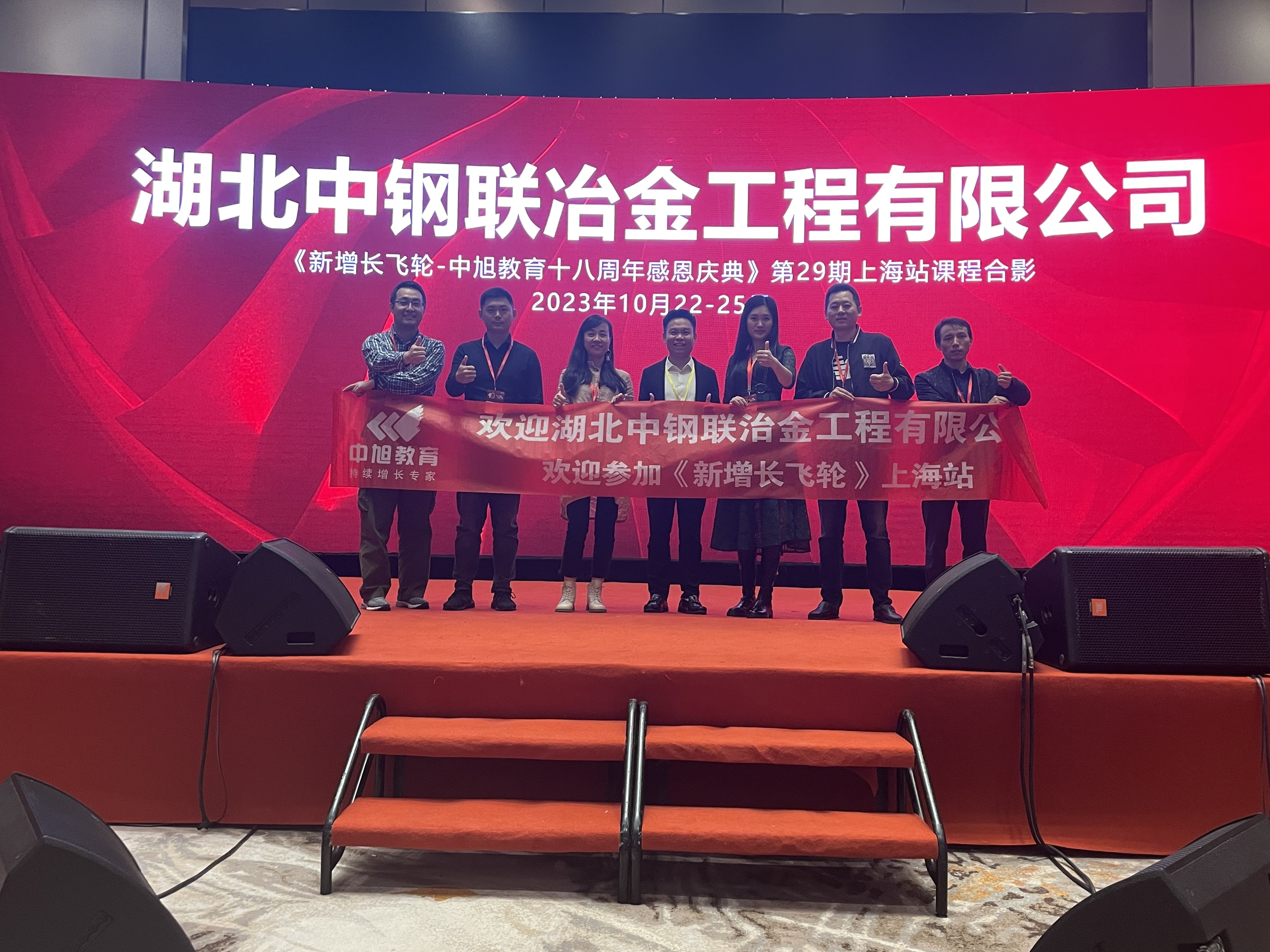 10 月 22-25 日金秋之際,中旭教育在上海舉行《新增長飛輪》課程,湖北中鋼聯冶金工程有限公司組織董事長符乃良、總經理何雙林等 7 人管理團隊參加了此次四天三晚的培訓,共同學習了新商業時代以價值驅動企業持續增長的商業系統,層層深入式的學習價值驅動方法論,發掘企業未來 5-10 年的核心增長點。
